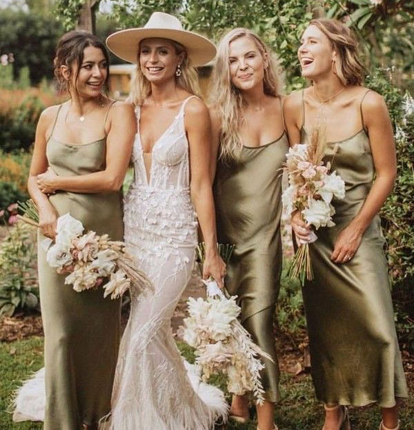 Spaghetti Straps Ankle Length Silk Bridesmaid Dresses