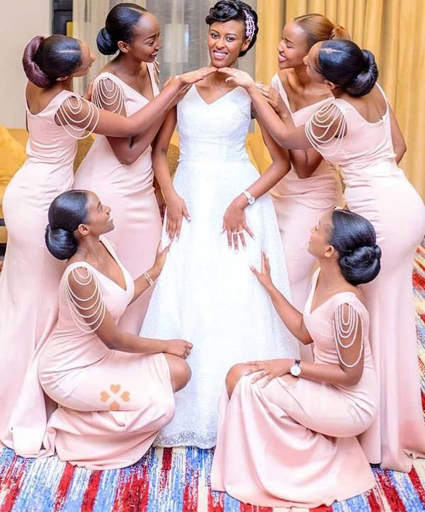 V Neck Mermaid Bridesmaid Dresses with Beading