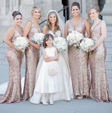 V Neck Bridesmaid Dresses Sequined for Wedding