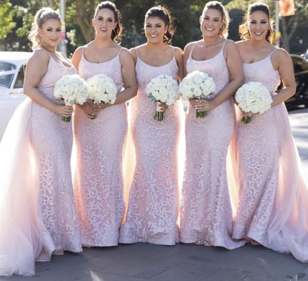 Pink Lace Bridesmaid Dresses Spaghetti Straps