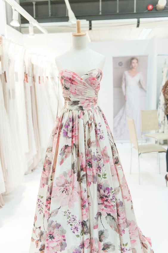 Elegant Sweetheart Floral Print Wedding Dress for Bridal