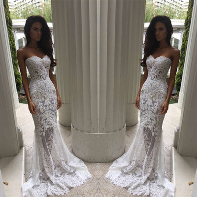 Sweetheart White Mermaid Wedding Dress with Appliques
