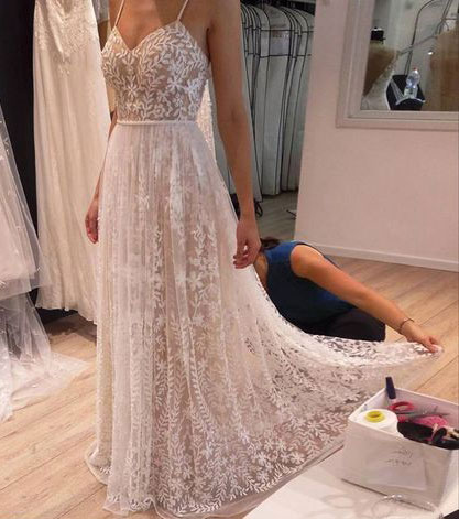 Spaghetti Straps Beach Wedding Dress with Appliques