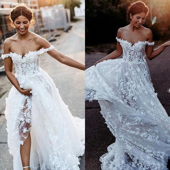Off the Shoulder Wedding Dresses with 3D Flowers