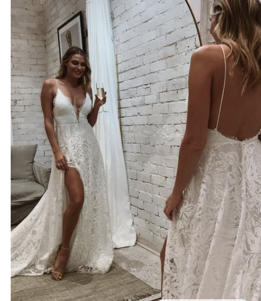 Spaghetti Straps Slit Side Wedding Dresses Bridal Gown