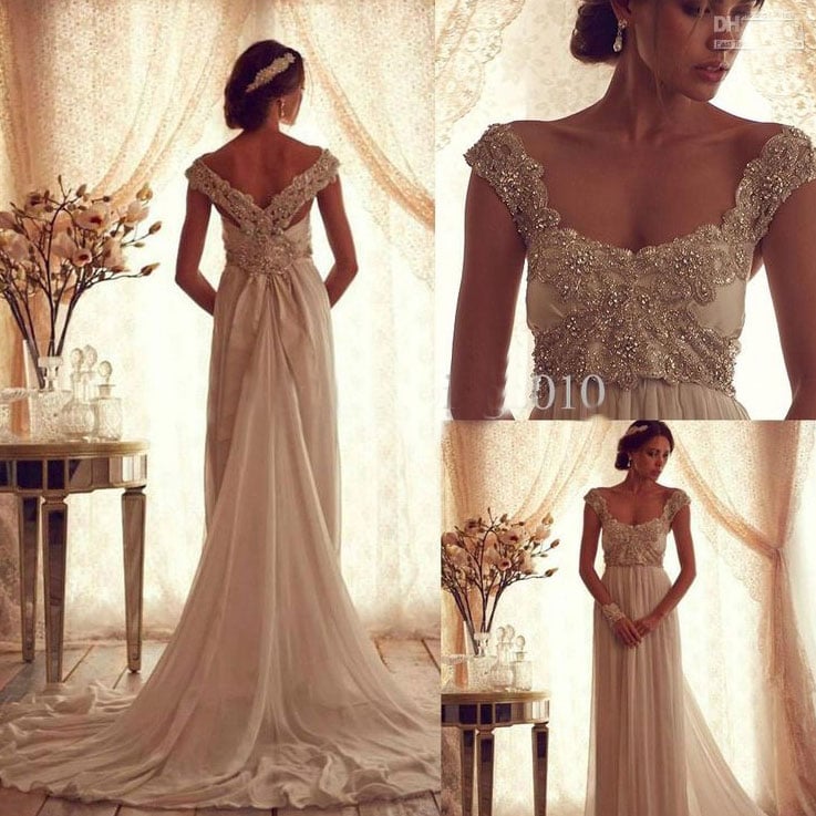 Vintage Wedding Dresses Bridal Gown with Rhinestones