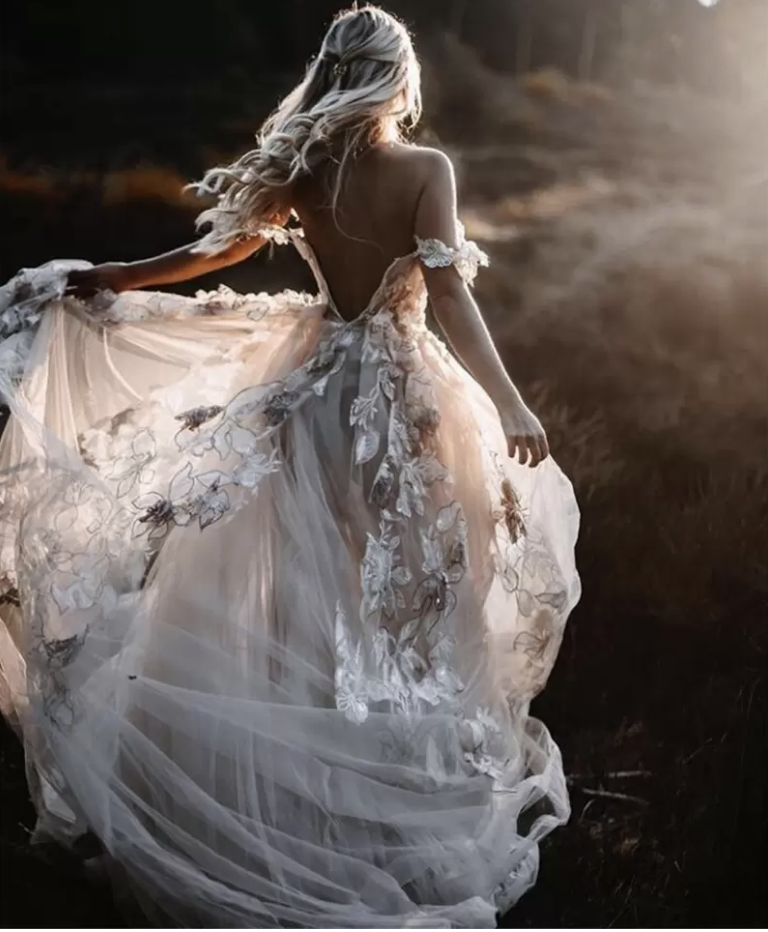 Off the Shoulder Wedding Dresses Bridal Gown with Appliques