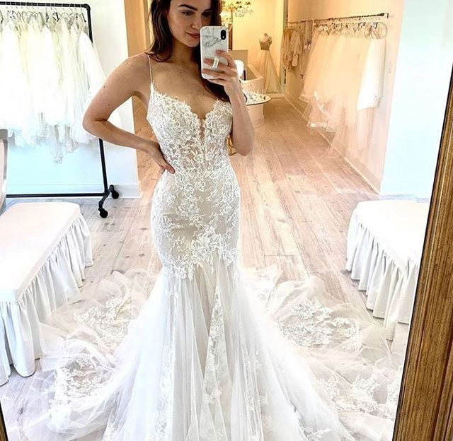 Spaghetti Straps Mermaid Wedding Dress with Lace