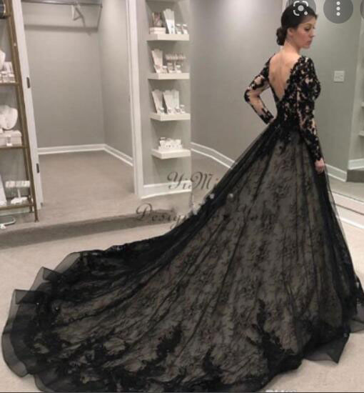 Black Lace Wedding Dresses Bridal Gown with Sleeves