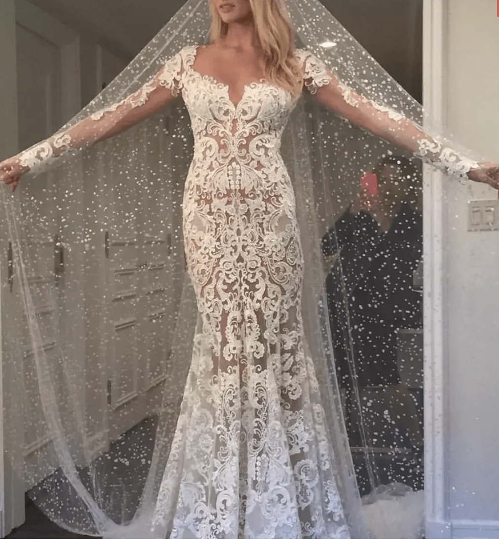 V Neck Wedding Dresses Bridal Gown Mermaid with Sleeves WD23