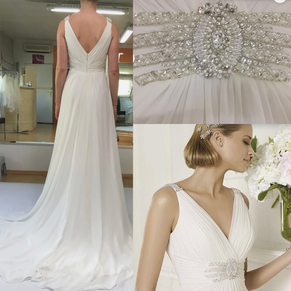 V Neck Wedding Dresses Bridal Gown Waist with Beading