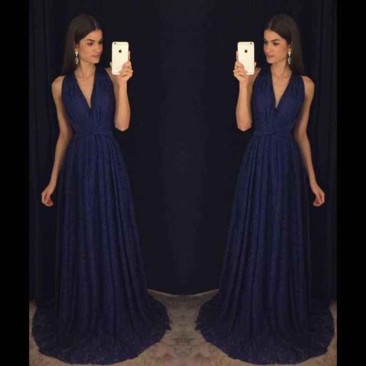 Elegant V Neck Halter Royal Blue Backless Prom Dresses for Women