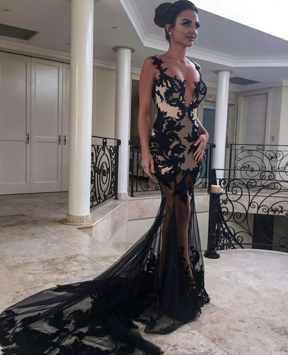 Elegant Mermaid Long Prom Dresses with Appliques Lace