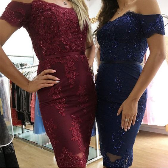 Sheath Short Burgundy/Royal Blue Prom Dresses with Appliques