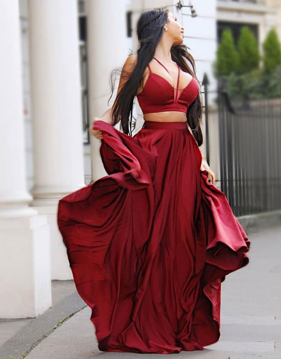 Sexy Chiffon Black Two Piece Prom Dresses for Women