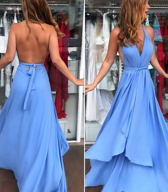 Sexy Deep V Neck Halter Long Prom Dresses Under 100