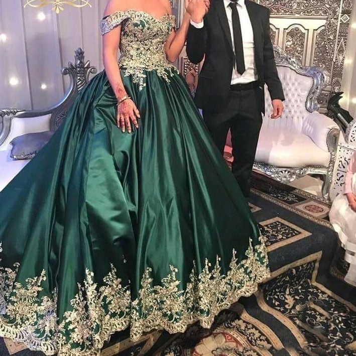 Off the Shoulder Green Prom Dresses with Appliques for Women