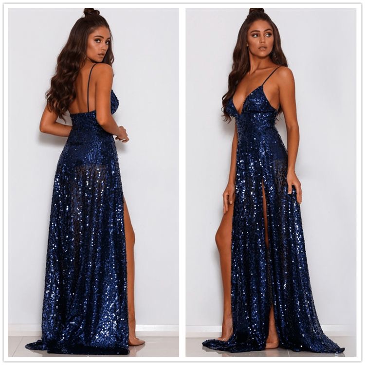 Spaghetti Straps Split Side Royal Blue Long Prom Dresses
