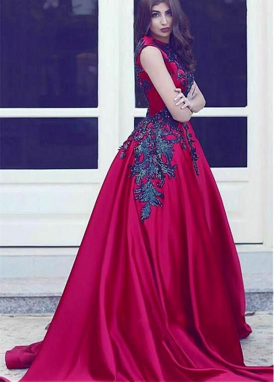 Dark Red Prom Dresses Quinceanera Gown with Black Appliques