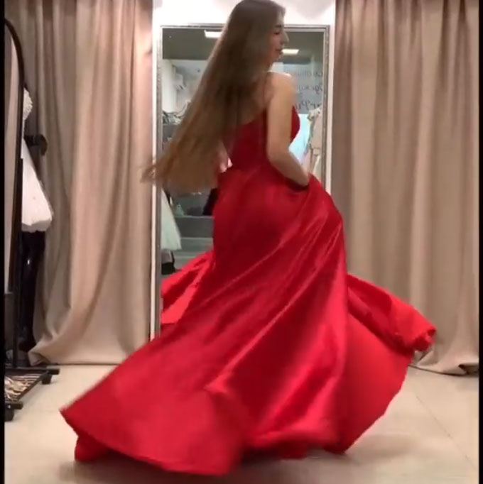 Spaghetti Straps Red Prom Dresses with Slit Side