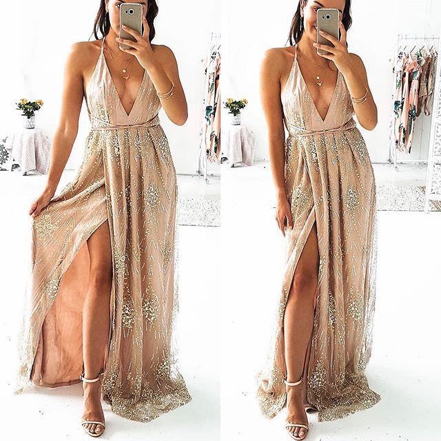 Spaghetti Straps Split Prom Dresses