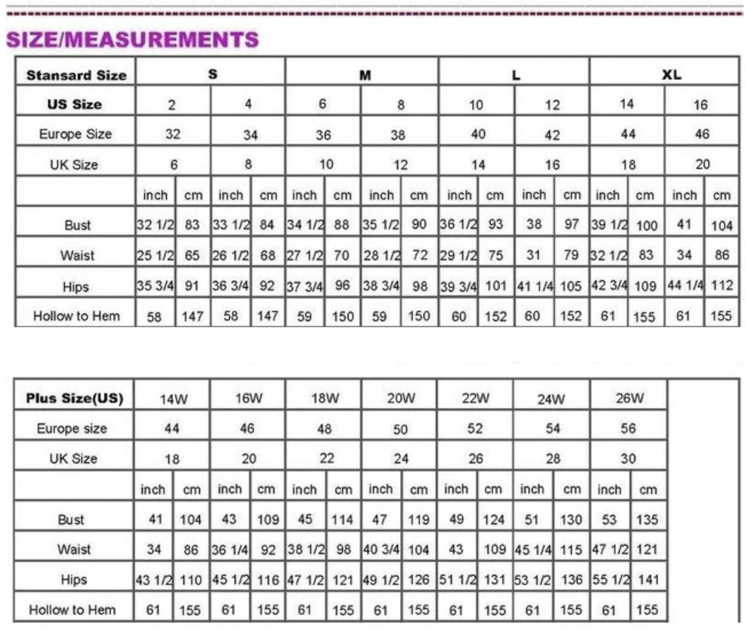 Hollow to Hem___inch/cm (for short dress) ; Hollow to Floor___inch/cm (for long dress)