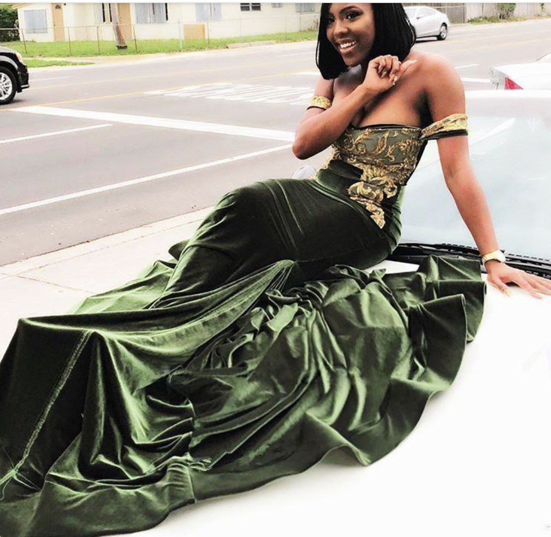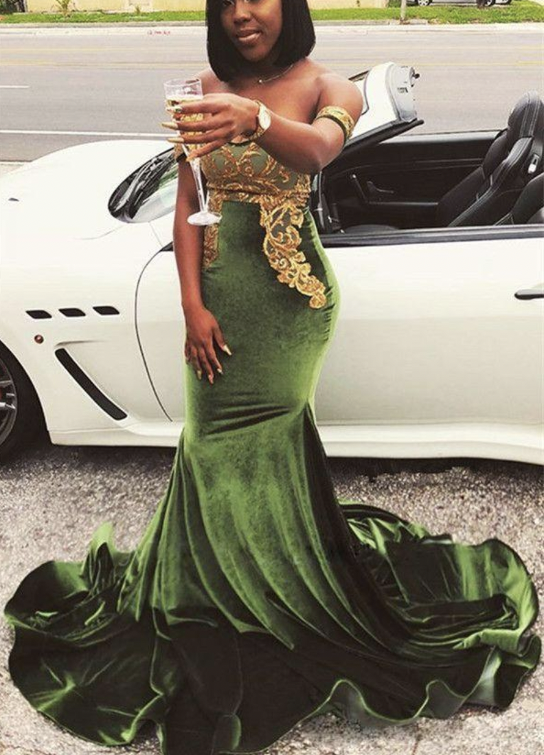 Off the Shoulder Prom Dresses Mermaid with Gold Lace