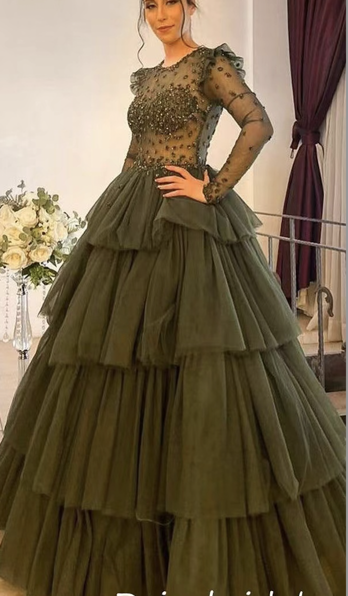 Dark Olive Green Prom Dresses with Beading