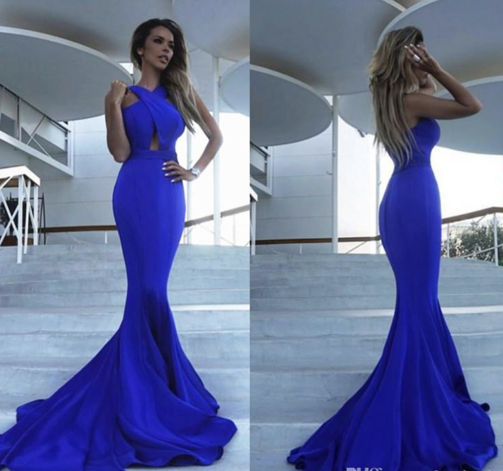 Royal Blue Prom Dresses Mermaid Halter Keyhole