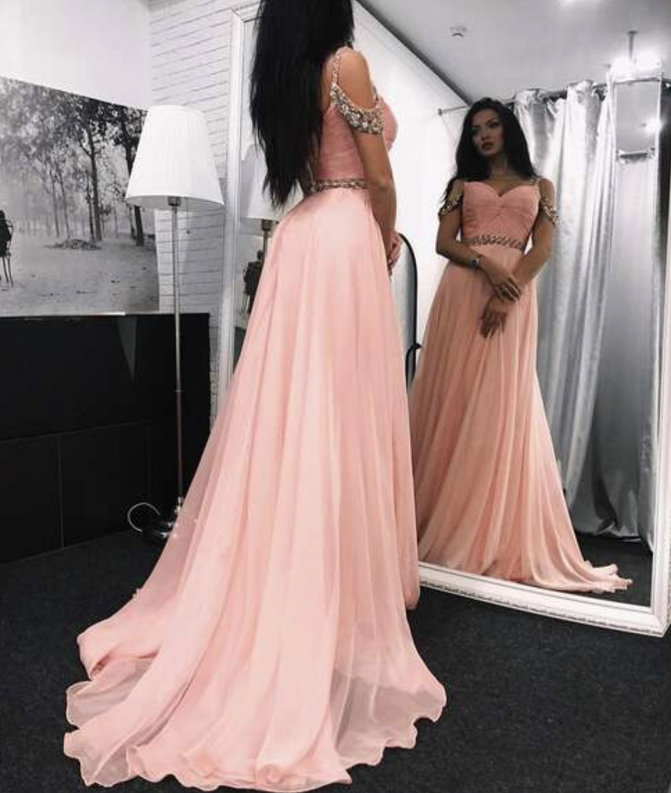 Off Shoulder Pink Prom Dresses with Rhinestones