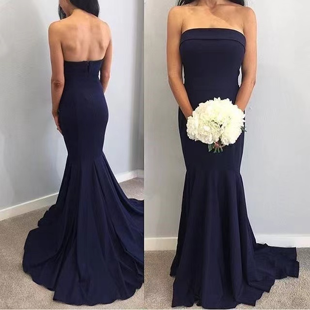 Strapless Prom Dresses Navy Blue Mermaid Bridesmaid Dresses
