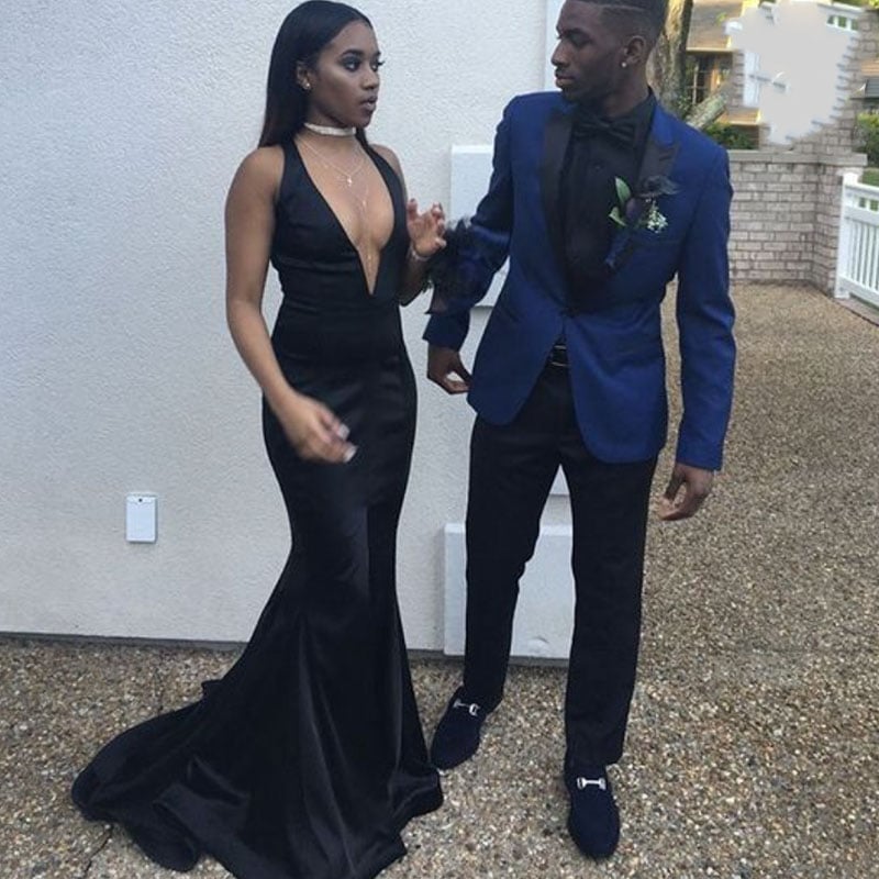 Deep V Neck Black Prom Dresses for Women