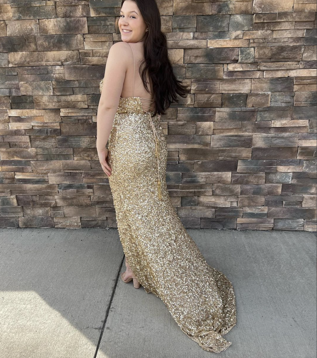 Sparkly Prom Dresses Sequins Slit Side Evening Gown