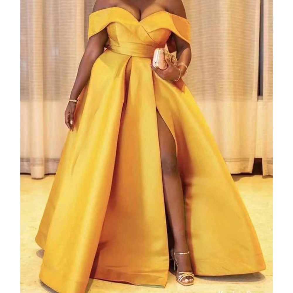 Plus Size Prom Dresses Off Shoulder Slit Side