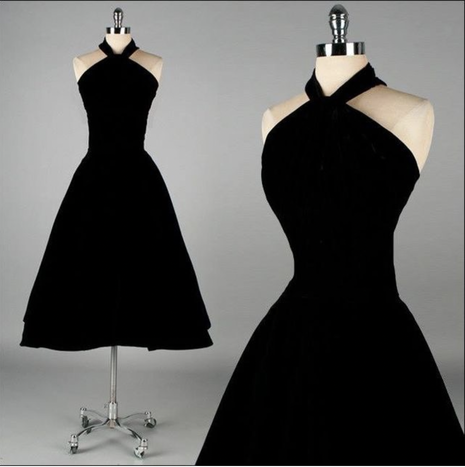 Vintage Halter Black Dresses Prom Party Gown