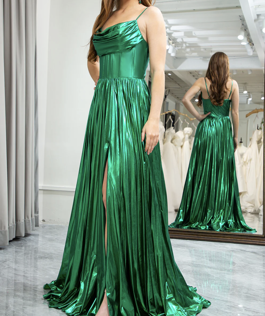 Green Corset Prom Dress with Slit Side A-line Spaghetti Straps
