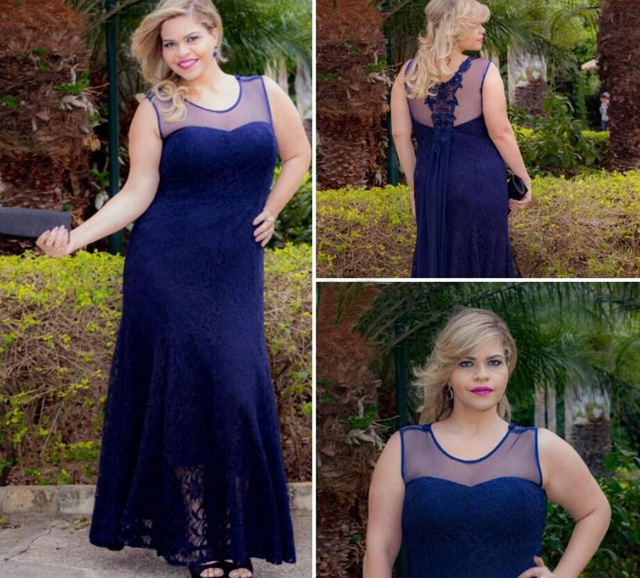 Plus Size Lace Sheer Neck Long Mother of the Bride Dresses