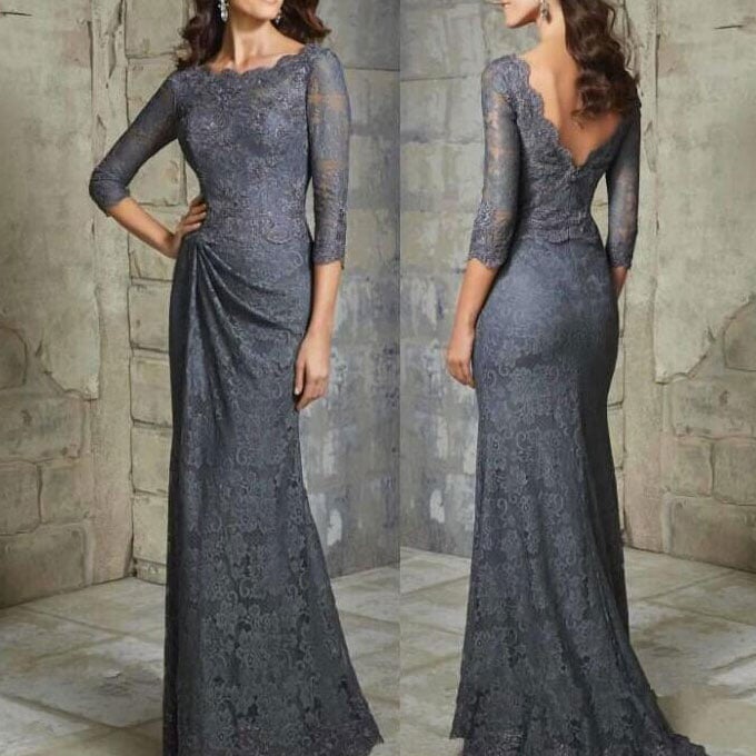3/4 Long Sleeves Sheath Lace Long Mother of the Bride Dresses
