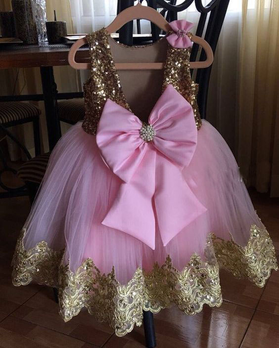 Elegant Tulle Pink Flower Girl Dresses with Sequined Bowknot