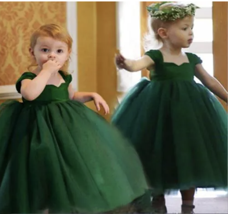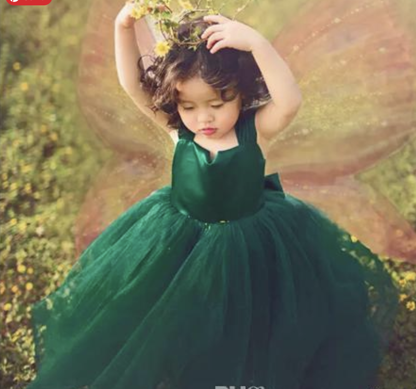 Straps Green Flower Girl Dresses Floor Length