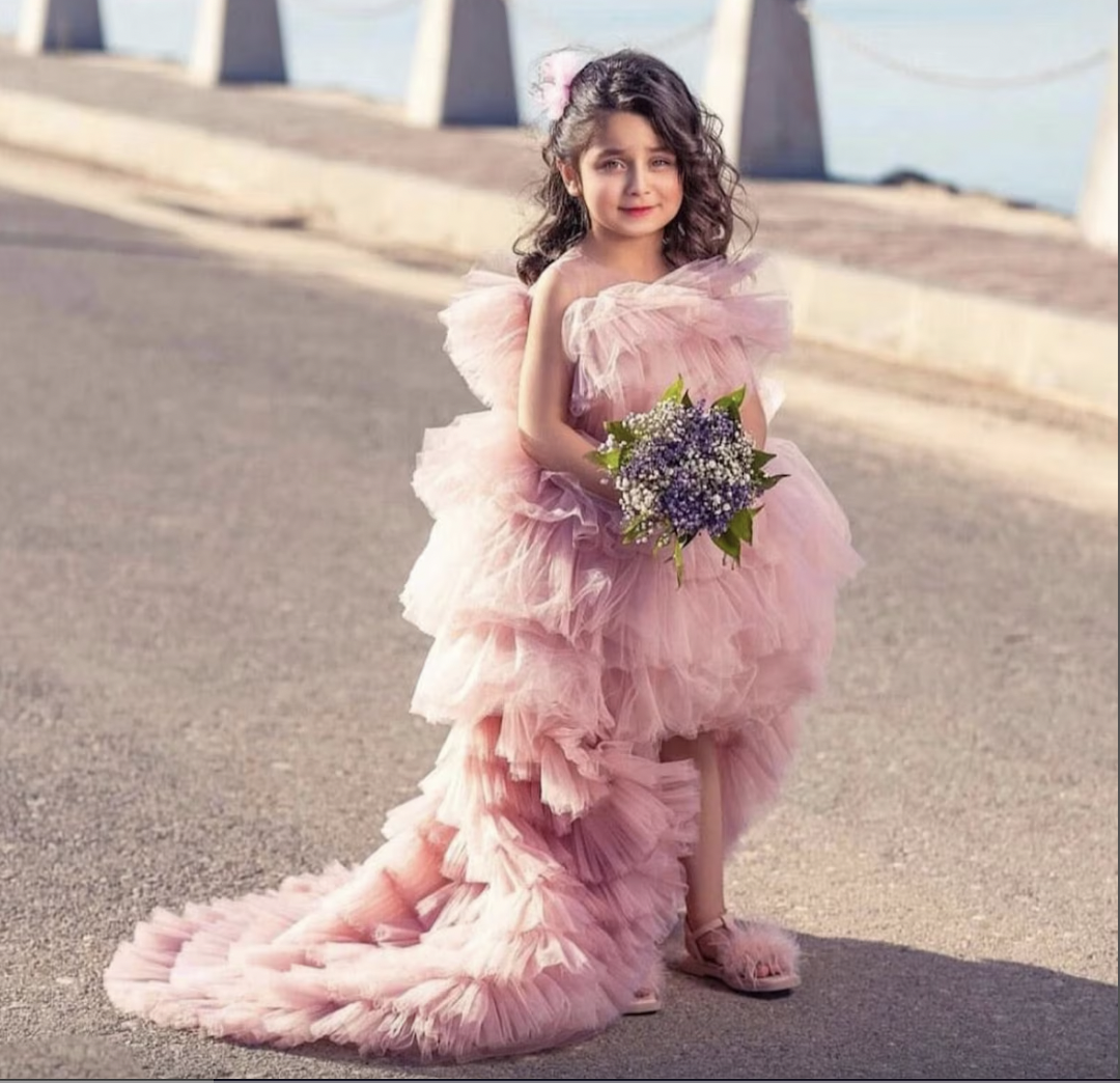 Pink Flower Girl Dresses Hi Low Princess Gown