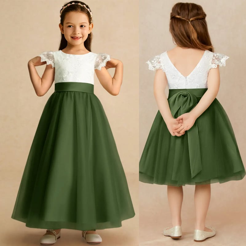 Olive Green Flower Girl Dresses Floor Length/Knee Length