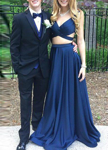 Sexy 2 Piece Royal Blue Satin Prom Dresses for Women