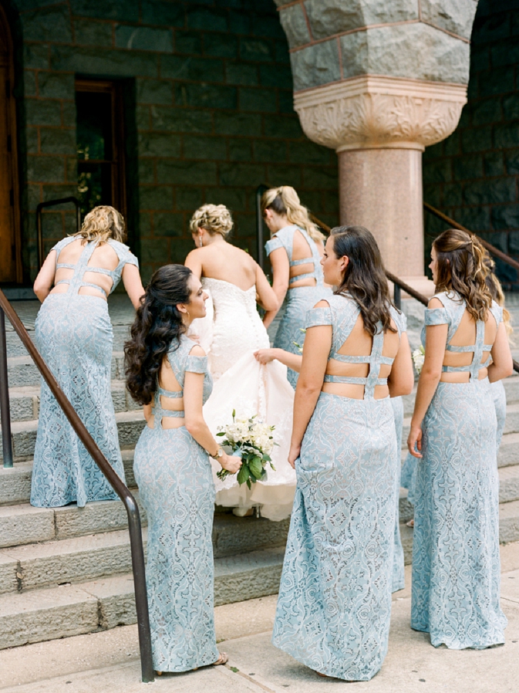 Hot Selling Baby Blue Lace Bridesmaid Dresses for Wedding Party
