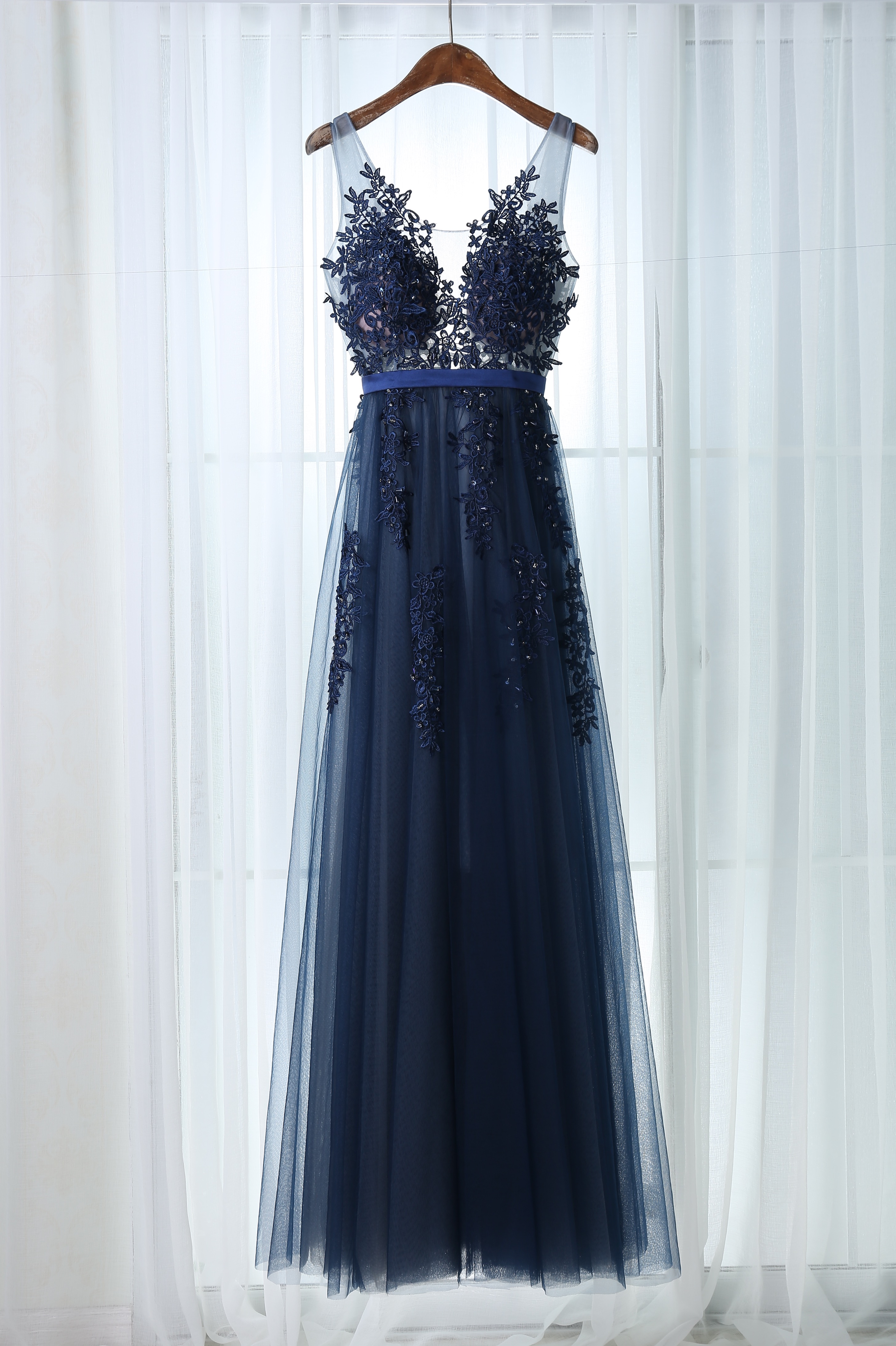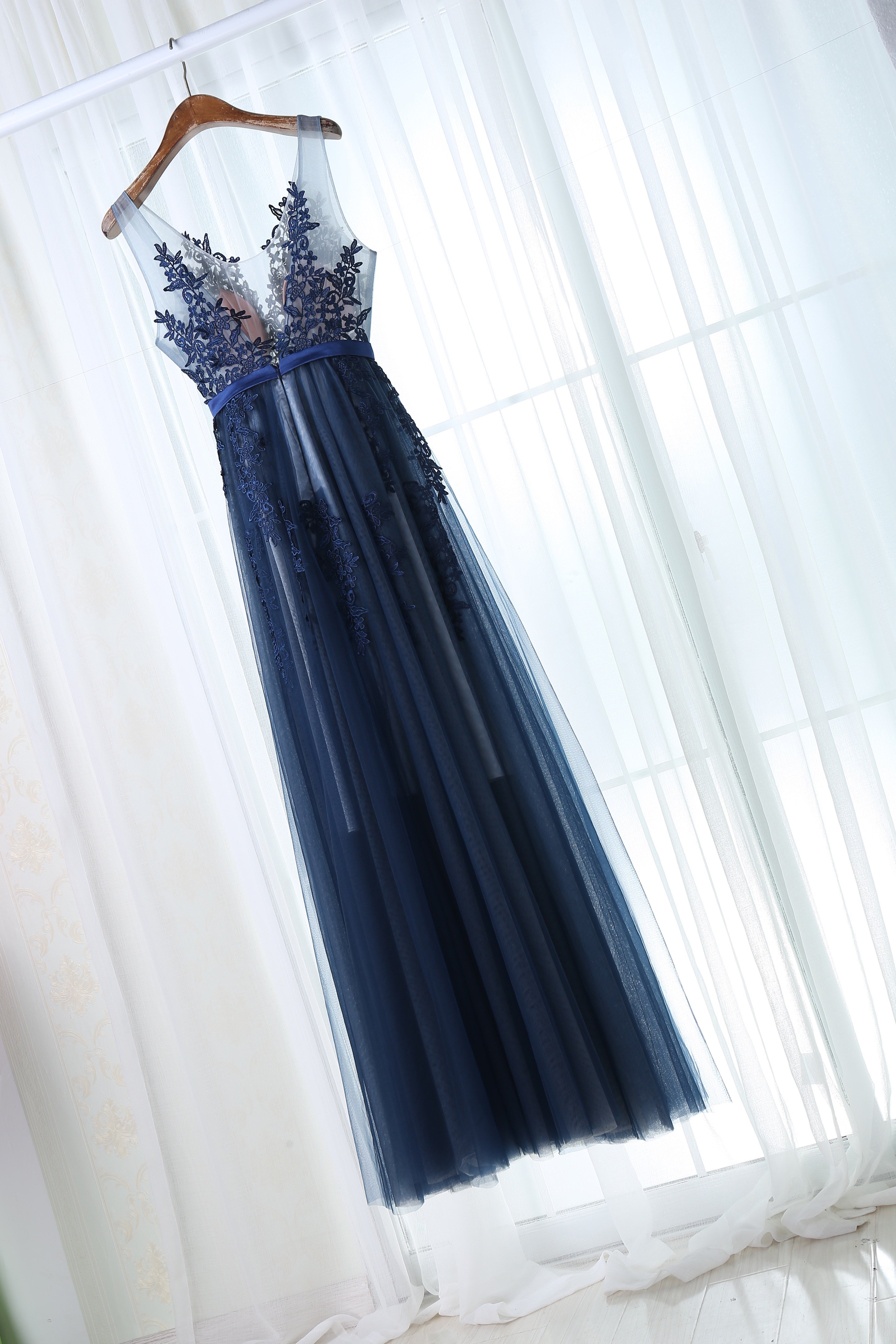 Dark Long Tulle long dresses with appliques