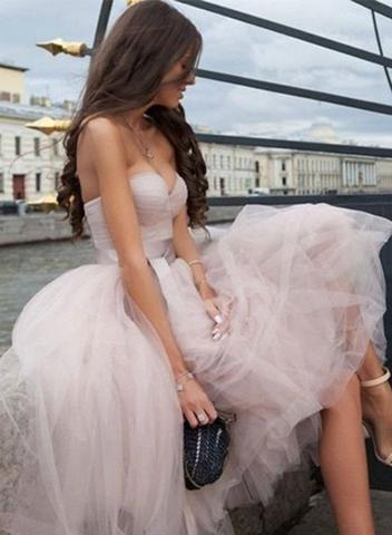 Light Pink Sweetheart Soft Tulle Prom Dresses Homecoming Dresses for Junior