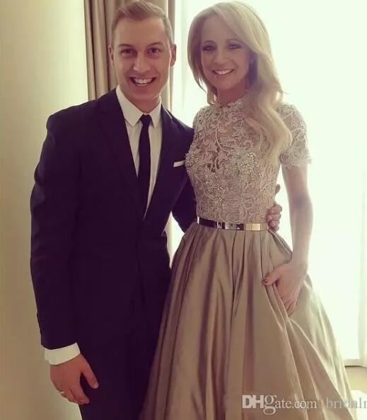 Elgeant Short Lace Champagne Long Prom Dresses Evening Dresses