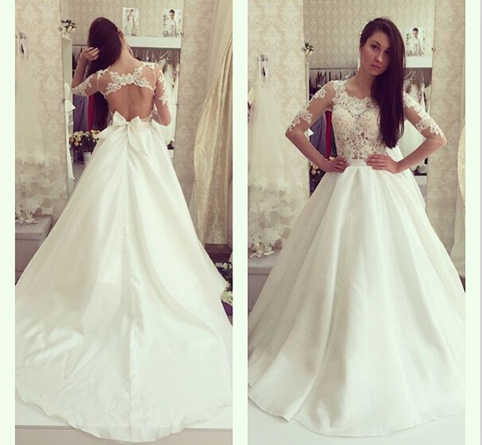 Spaeical Open Back Long Sleeves Wedding Dresses Bridal Gowns with Appliques