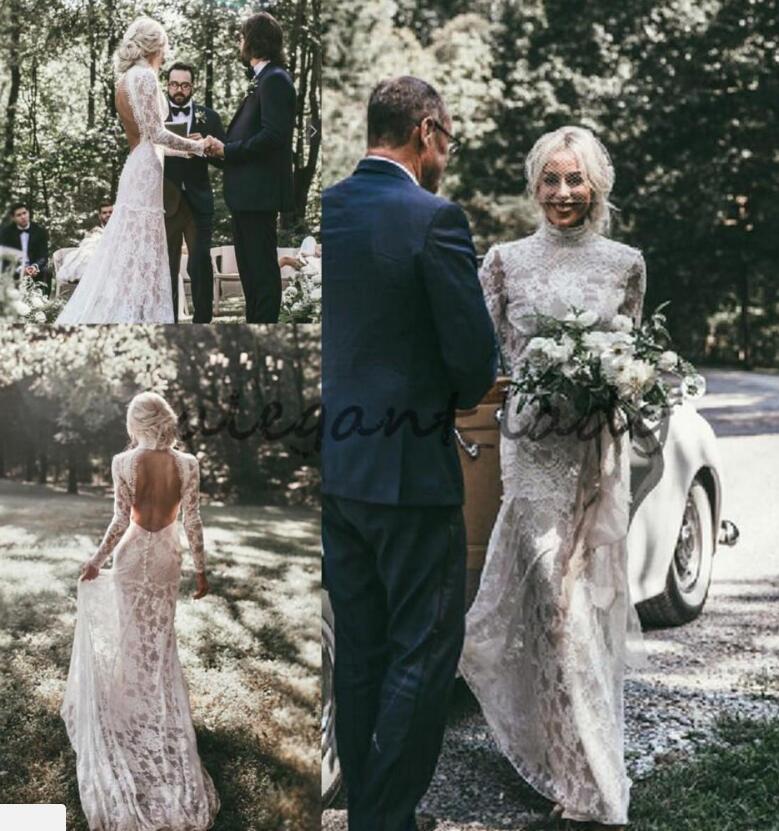 Vintage Backless Long Sleeves Lace BoHo Wedding Dress