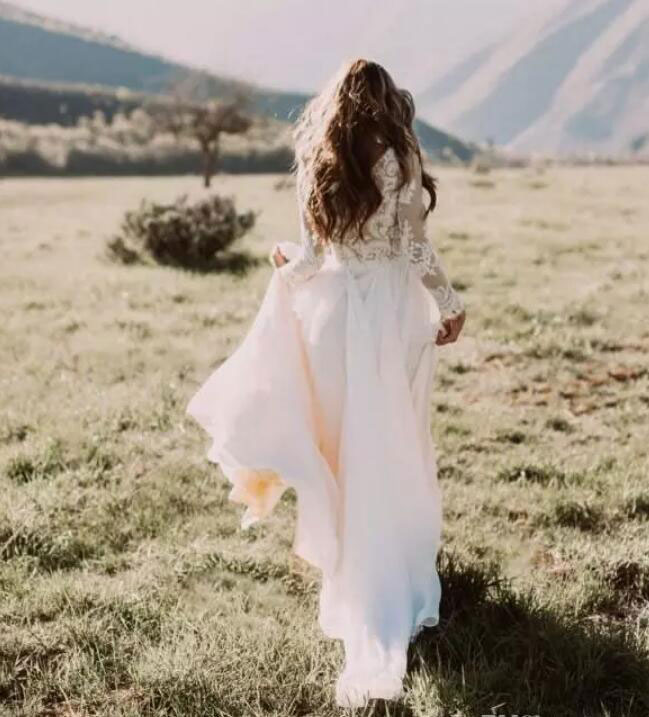 Vinatge Boho Wedding Dress with Long Sleeves